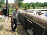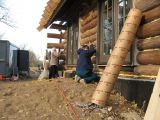 Chuck backfilling the foundation. The door frames to the deck are ready for logs to be built around them.