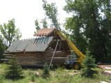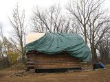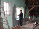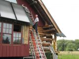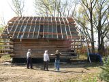 Chuck making the old barn roof fit.