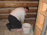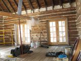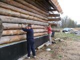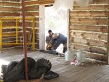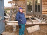 Mary and Jean adding nails for chinking.
