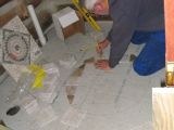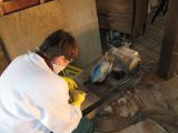 Mary cleaning tile after installation.