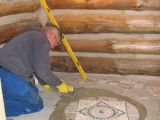 Starting the tile pattern in the main level bathroom.