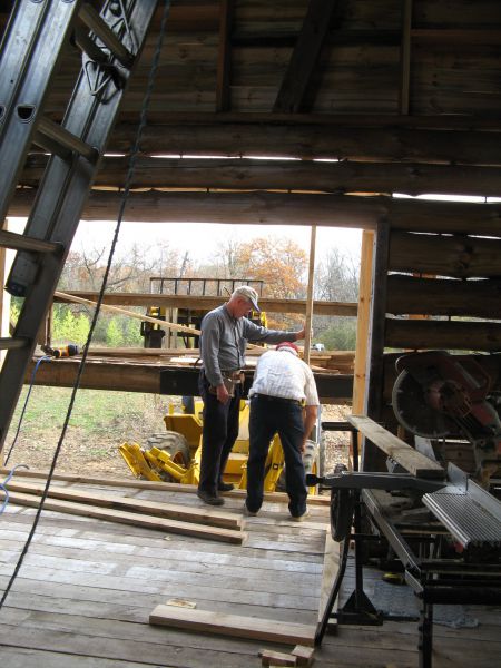 Chuck making the old barn roof fit.