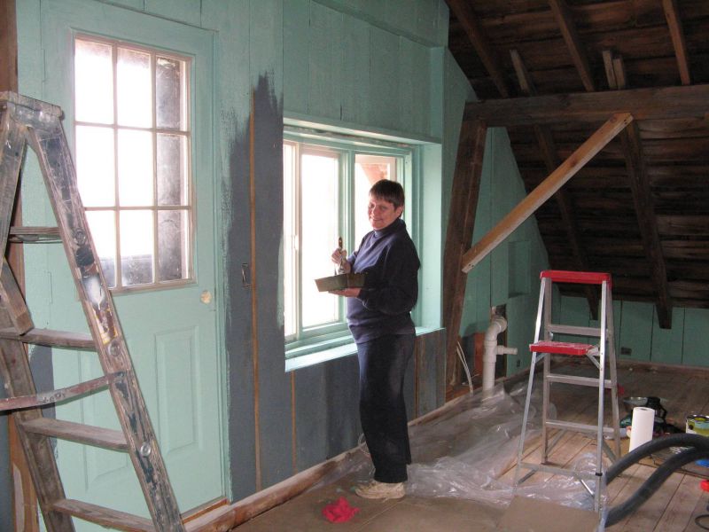 Mary painting the loft.