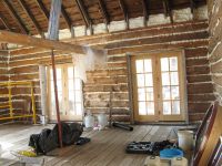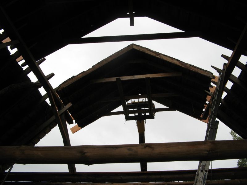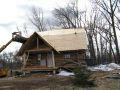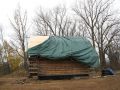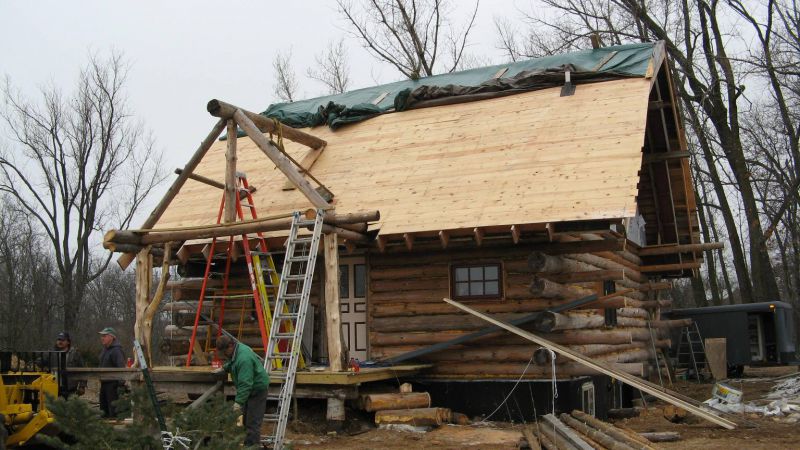 What is a barn roof doing on a log cabin? A great question. Through a series of coincidences which included a meticulously dismantled barn roof, a semi with wide load permits, and a willing crew, this hip or gambrel roof found its way from Menomenee, WI to become the ceiling of the cabin. Its rustic charm can be seen whenever you look up, while a modern, super-insulated roof structure keeps the elements out 24/7. Take a peek at how the roof came to be: